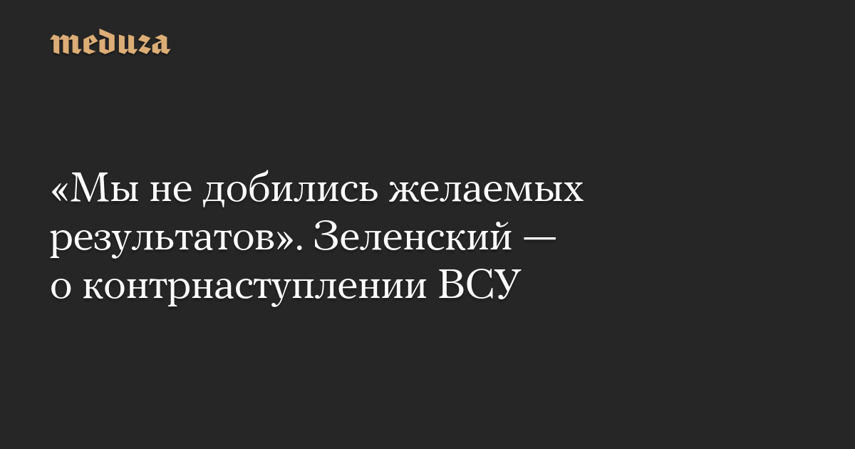 Мы хотели получить более быстрые результаты [контрнаступления]. С этой точки зрения, к сожалению, мы не добились желаемых результатов. И это факт.