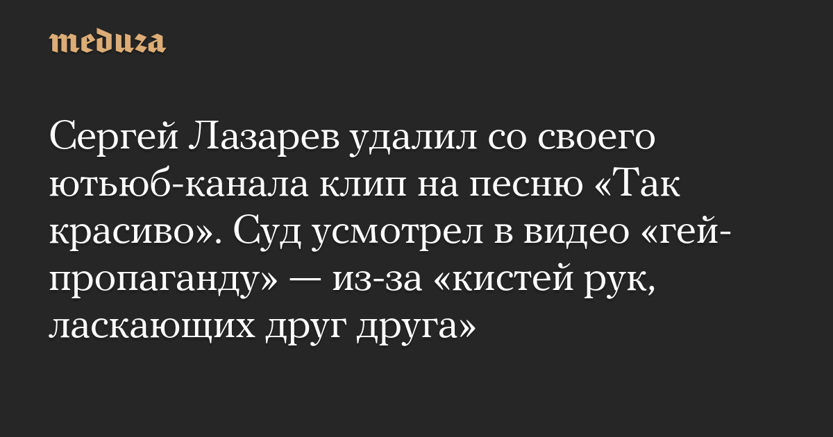 Сергей Лазарев удалил со своего ютьюб-канала клип на песню «Так красиво». Суд усмотрел в видео «гей-пропаганду» — из-за «кистей рук, ласкающих друг друга»
