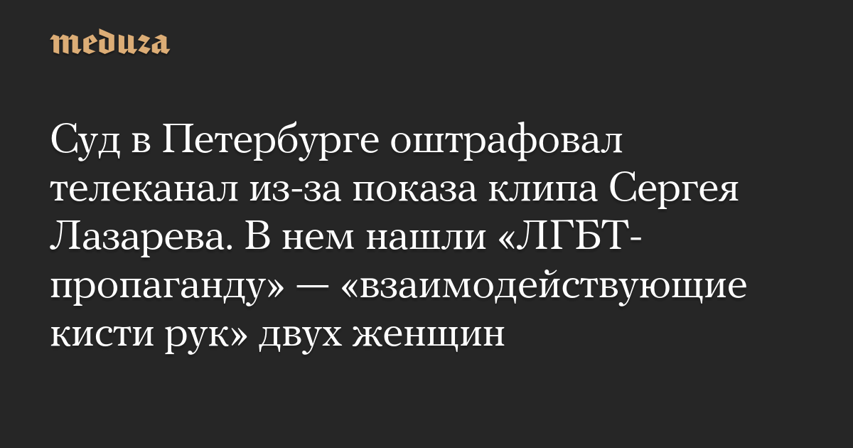 Суд в Петербурге оштрафовал телеканал из-за показа клипа Сергея Лазарева. В нем нашли «ЛГБТ-пропаганду» — «взаимодействующие кисти рук» двух женщин