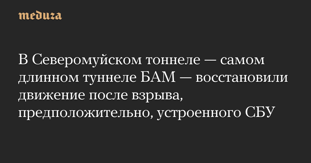 В Бурятии произошел взрыв в самом длинном тоннеле БАМа. Когда поезда пустили по объездному пути, взрыв произошел и там Это спецоперация СБУ, утверждают украинские СМИ