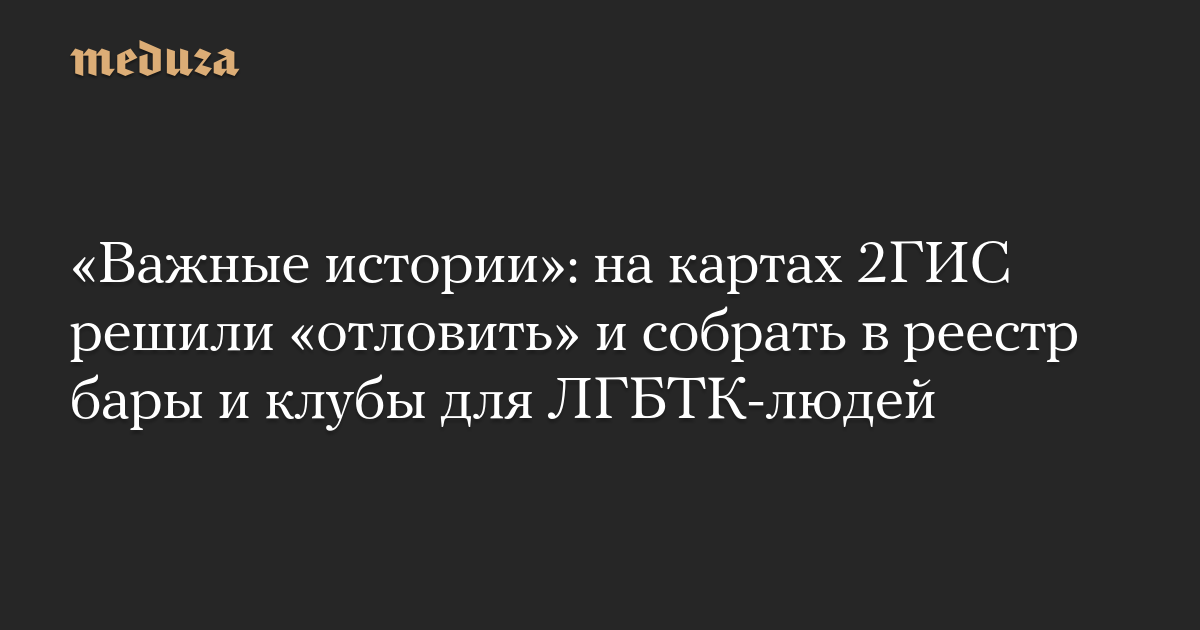 «Важные истории»: на картах 2ГИС решили «отловить» и собрать в реестр бары и клубы для ЛГБТК-людей