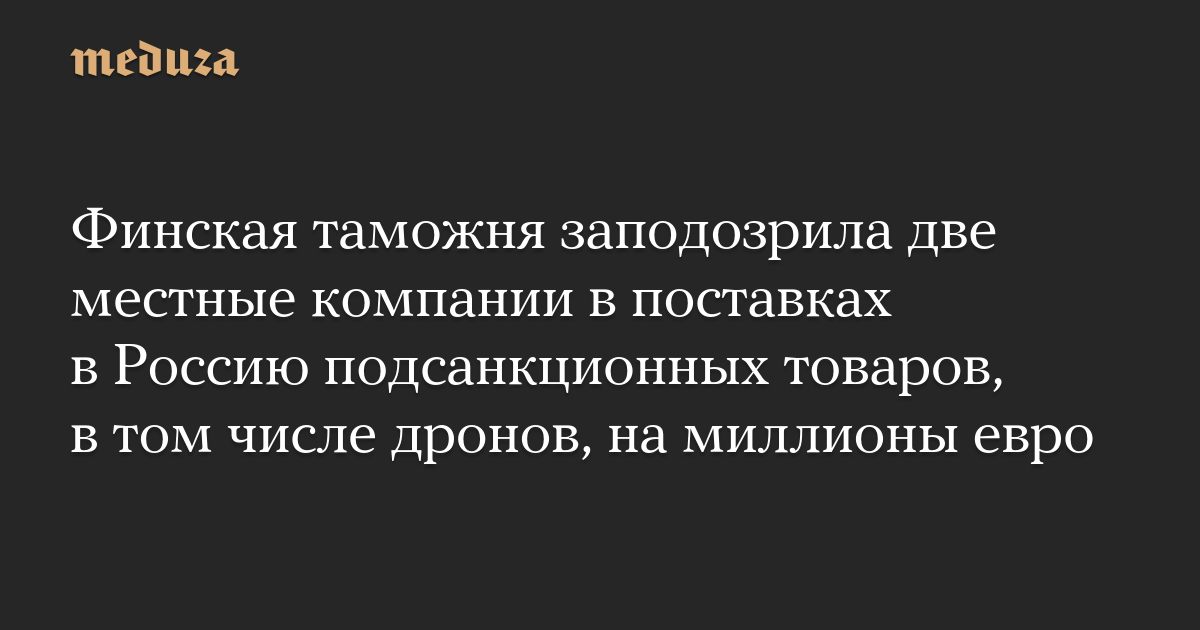 Финская таможня заподозрила две местные компании в поставках в Россию подсанкционных товаров, в том числе дронов, на миллионы евро
