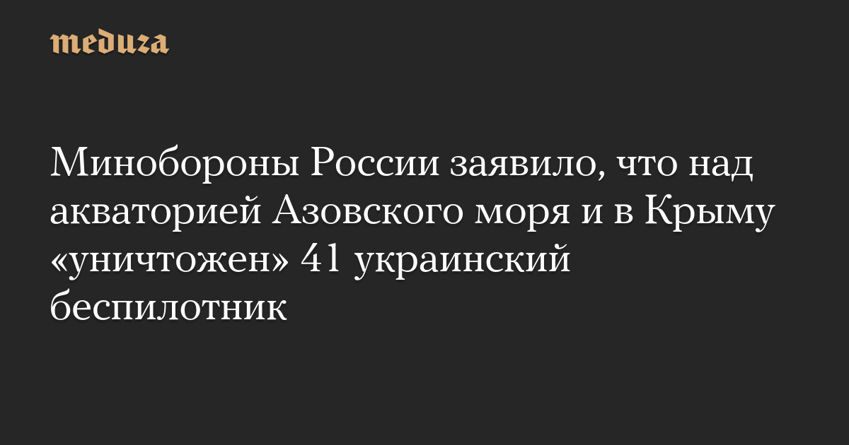 Минобороны России заявило, что над акваторией Азовского моря и в Крыму «уничтожен» 41 украинский беспилотник