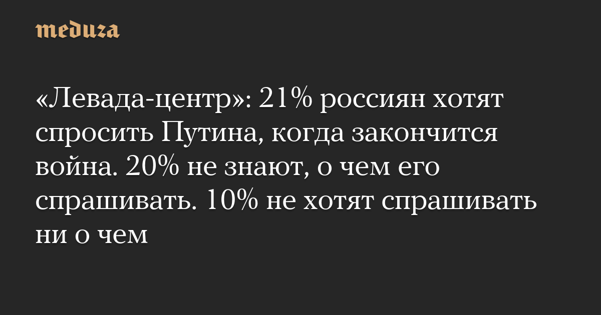 «Левада-центр»: 21% россиян хотят спросить Путина, когда закончится война. 20% не знают, о чем его спрашивать. 10% не хотят спрашивать ни о чем