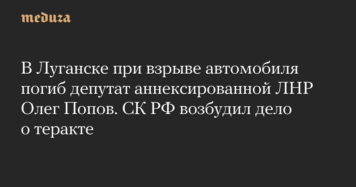 В Луганске при взрыве автомобиля погиб депутат аннексированной ЛНР Олег Попов. СК РФ возбудил дело о теракте