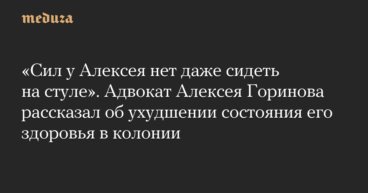«Сил у Алексея нет даже сидеть на стуле». Адвокат Алексея Горинова рассказал об ухудшении состояния его здоровья в колонии