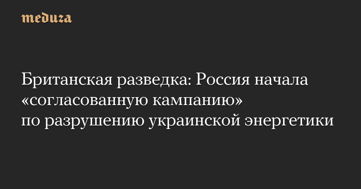 Британская разведка: Россия начала «согласованную кампанию» по разрушению украинской энергетики