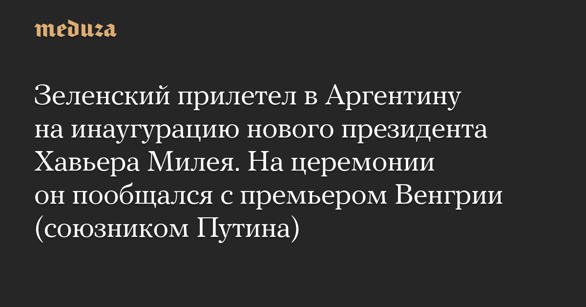 Зеленский прилетел в Аргентину на инаугурацию нового президента Хавьера Милея. На церемонии он пообщался с премьером Венгрии (союзником Путина)