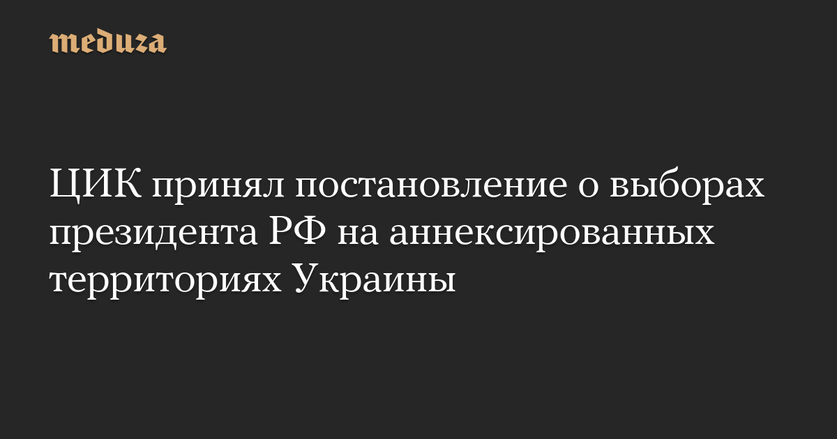Центральная избирательная комиссия России приняла постановление, согласно которому выборы президента РФ в марте 2024 года пройдут на аннексированных территориях Украины, где введено военное положение. Об этом сообщает «Интерфакс».