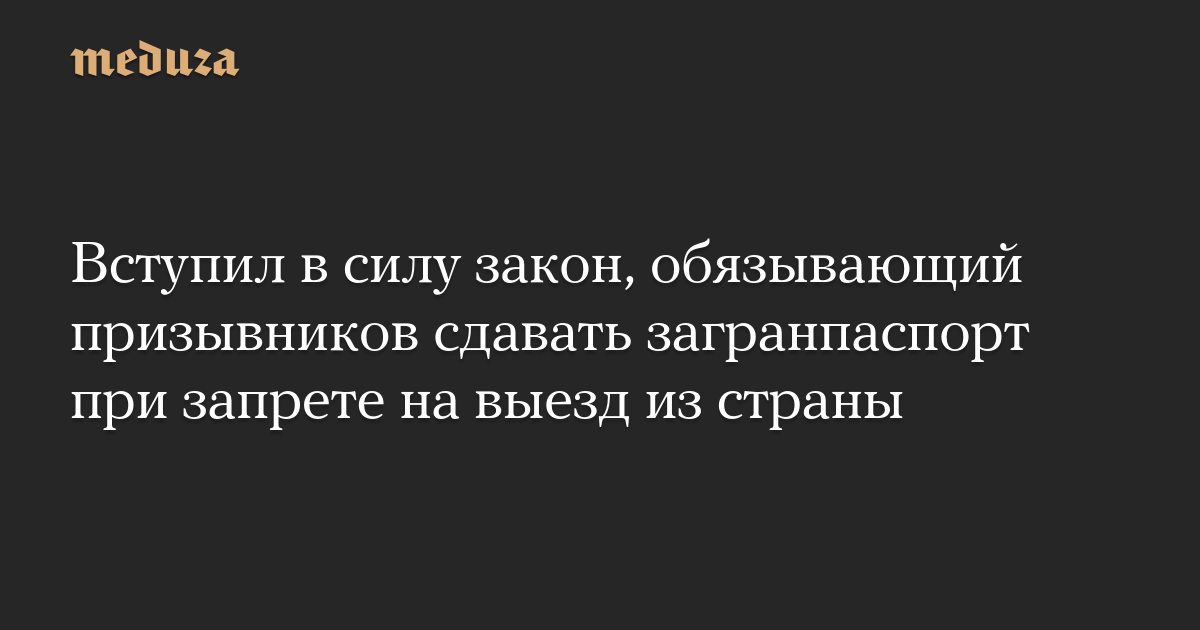 Поправки в закон «О порядке выезда из Российской Федерации и въезда в Российскую Федерацию», обязывающие, в числе прочего, призванных на военную или альтернативную гражданскую службу сдавать загранпаспорта, были подписаны президентом РФ 13 июня 2023 года. Закон вступил в силу 11 декабря — через 180 дней после официального опубликования.
