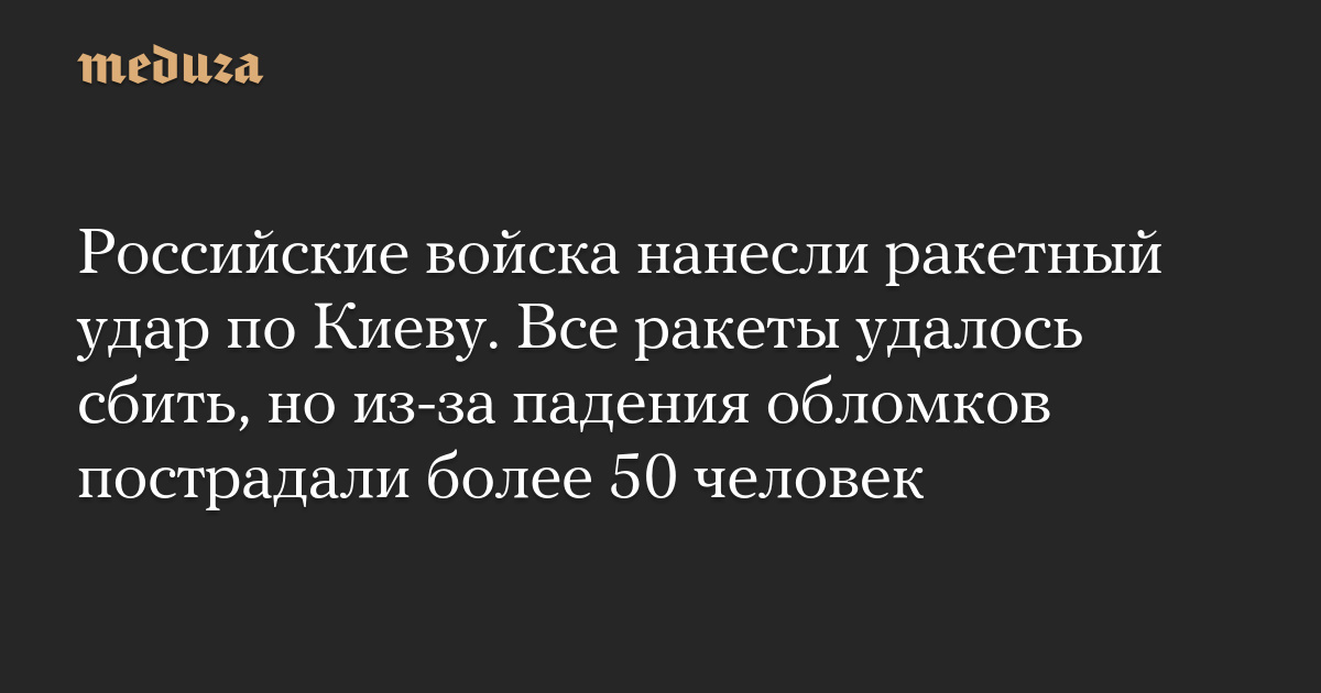Российские войска нанесли ракетный удар по Киеву. Все ракеты удалось сбить, но из-за падения обломков пострадали более 50 человек