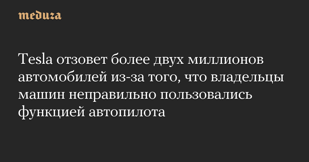 Tesla отзовет более двух миллионов автомобилей из-за того, что владельцы машин неправильно пользовались функцией автопилота