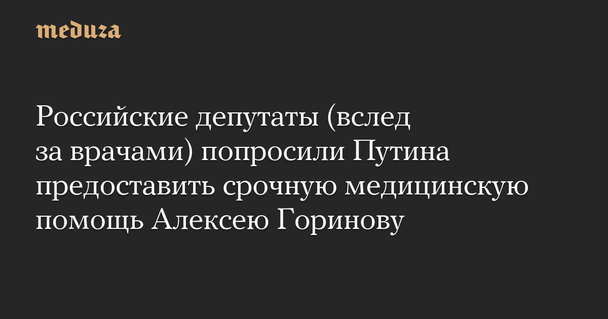 Российские депутаты (вслед за врачами) попросили Путина предоставить срочную медицинскую помощь Алексею Горинову