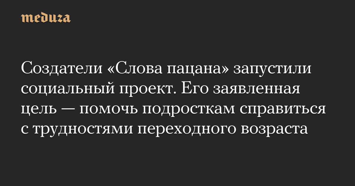Создатели «Слова пацана» запустили социальный проект. Его заявленная цель — помочь подросткам справиться с трудностями переходного возраста