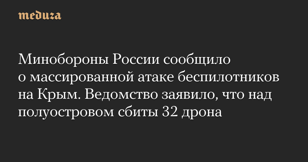 Минобороны России сообщило о массированной атаке беспилотников на Крым. Ведомство заявило, что над полуостровом сбиты 32 дрона