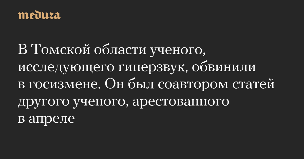 В Томской области ученого, исследующего гиперзвук, обвинили в госизмене. Он был соавтором статей другого ученого, арестованного в апреле