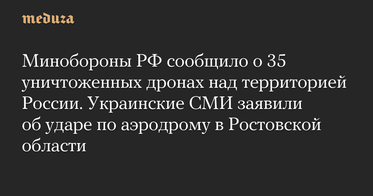 Минобороны РФ сообщило о 35 уничтоженных дронах над территорией России. Украинские СМИ заявили об ударе по аэродрому в Ростовской области