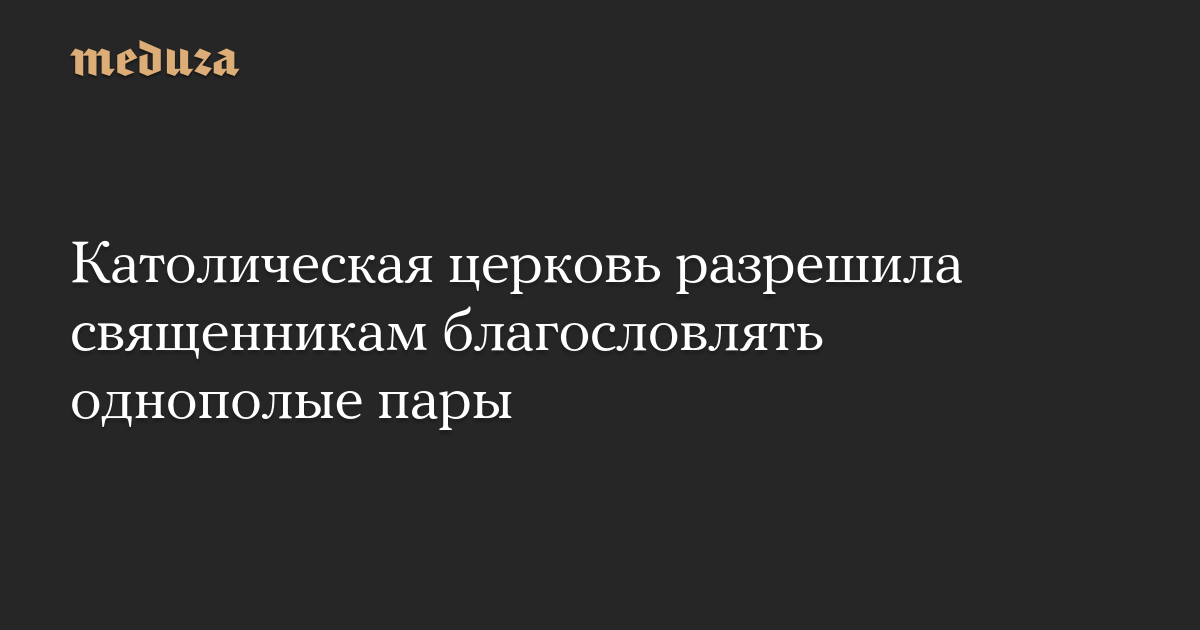 Католическая церковь разрешила священникам благословлять однополые пары. Соответствующий документ опубликован Доктринальным отделом Ватикана.