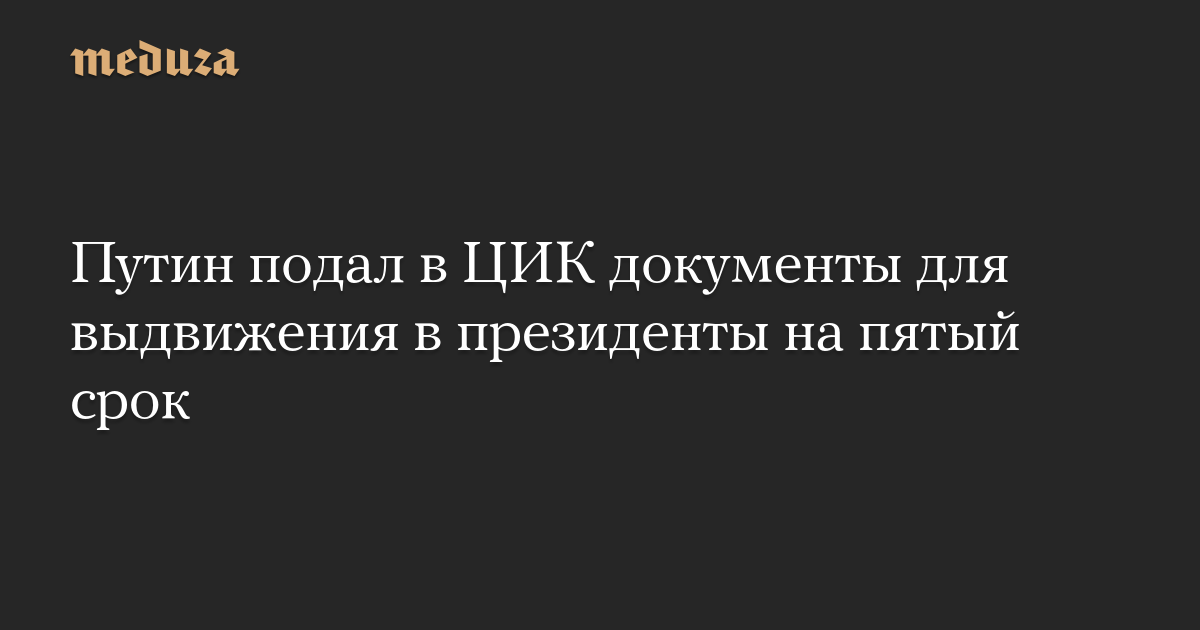 Путин подал в ЦИК документы для выдвижения в президенты на пятый срок