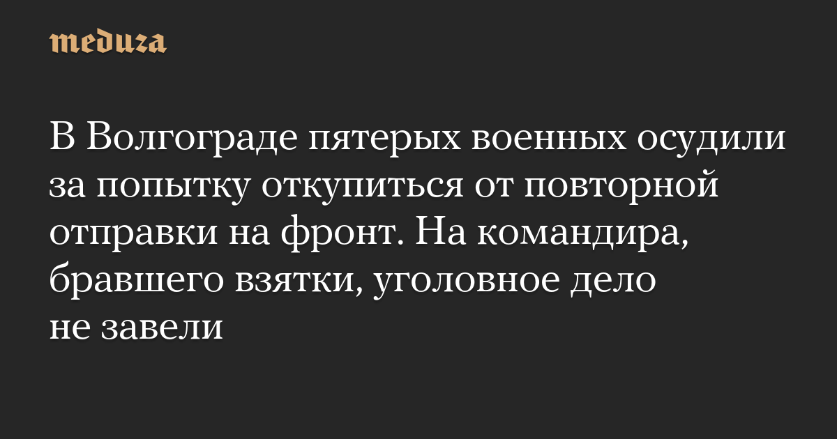 В Волгограде пятерых военных осудили за попытку откупиться от повторной отправки на фронт. На командира, бравшего взятки, уголовное дело не завели
