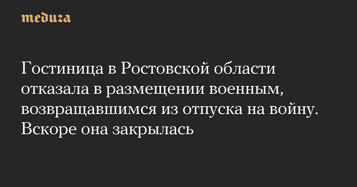 Гостиница в Ростовской области отказала в размещении военным, возвращавшимся из отпуска на войну. Вскоре она закрылась