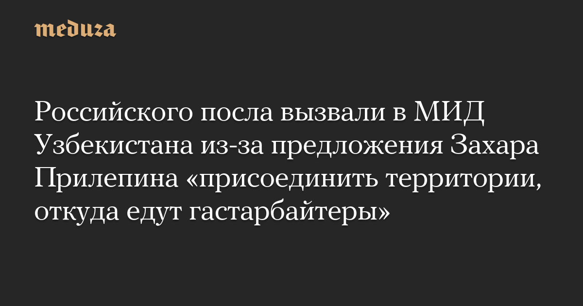 Российского посла вызвали в МИД Узбекистана из-за предложения Захара Прилепина «присоединить территории, откуда едут гастарбайтеры»