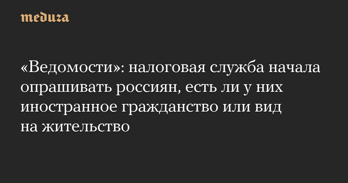 «Ведомости»: налоговая служба начала опрашивать россиян, есть ли у них иностранное гражданство или вид на жительство