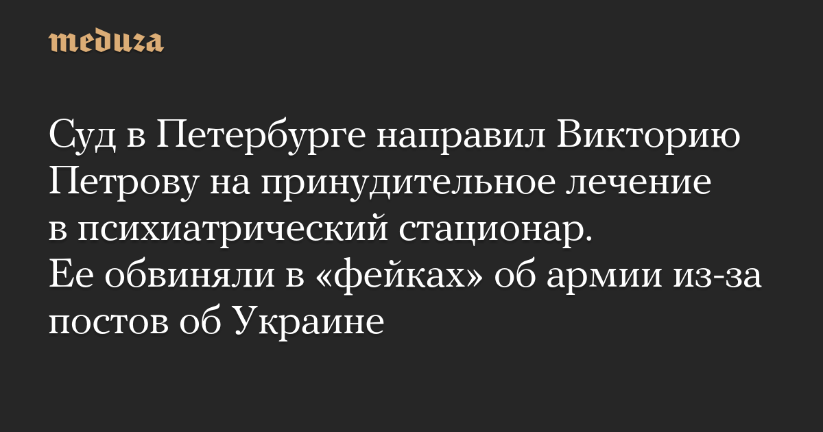 Суд в Петербурге направил Викторию Петрову на принудительное лечение в психиатрический стационар. Ее обвиняли в «фейках» об армии из-за постов об Украине