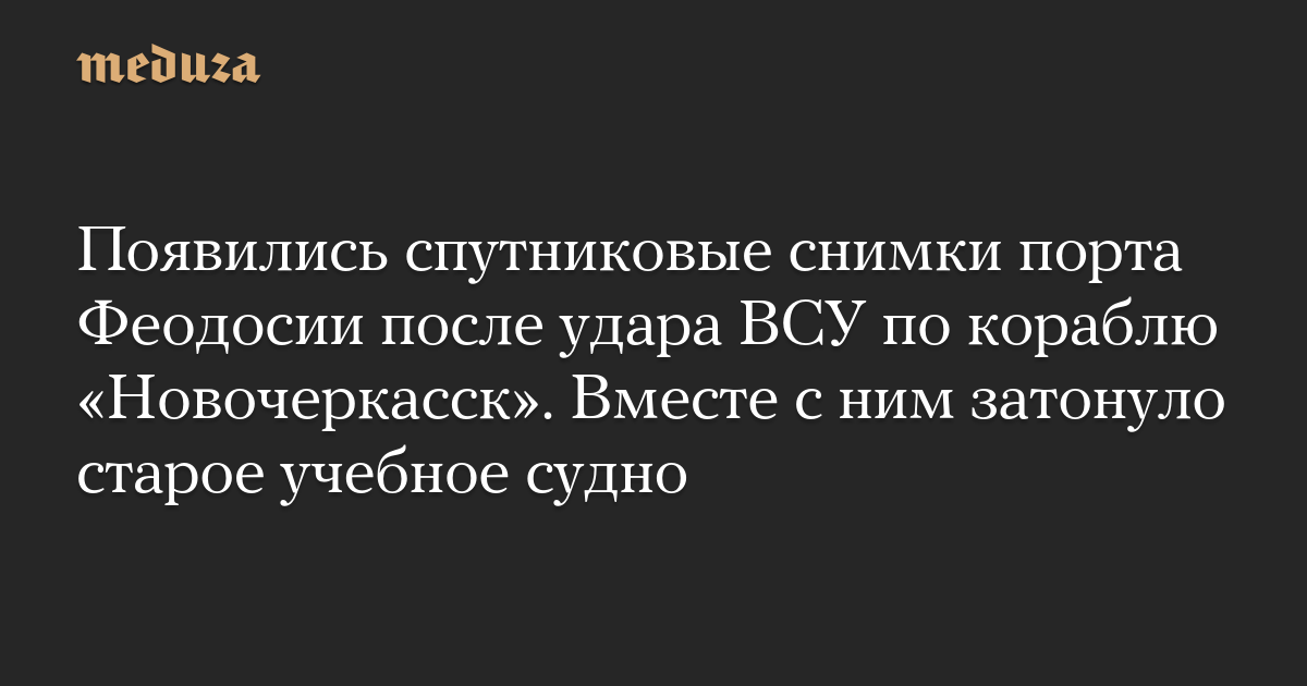 Появились спутниковые снимки порта Феодосии после удара ВСУ по кораблю «Новочеркасск». Вместе с ним затонуло старое учебное судно