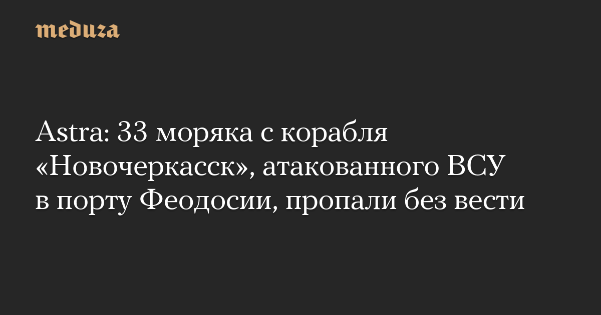 Как минимум 33 моряка числятся пропавшими без вести после удара ВСУ по десантному кораблю «Новочеркасск» в порту аннексированной Феодосии. Об этом со ссылкой на собственные источники сообщает телеграм-канал Astra.