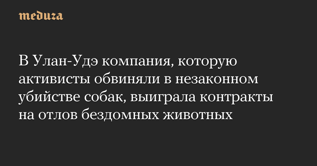 Администрация Улан-Удэ заключила контракты на «выполнение мероприятий по обращению с животными без владельцев» с местной службой по отлову животных ООО «ЦАСС», которую зоозащитники обвиняли в незаконном убийстве собак. Об этом пишет «Новая газета Европа» со ссылкой на документы на портале госзакупок.