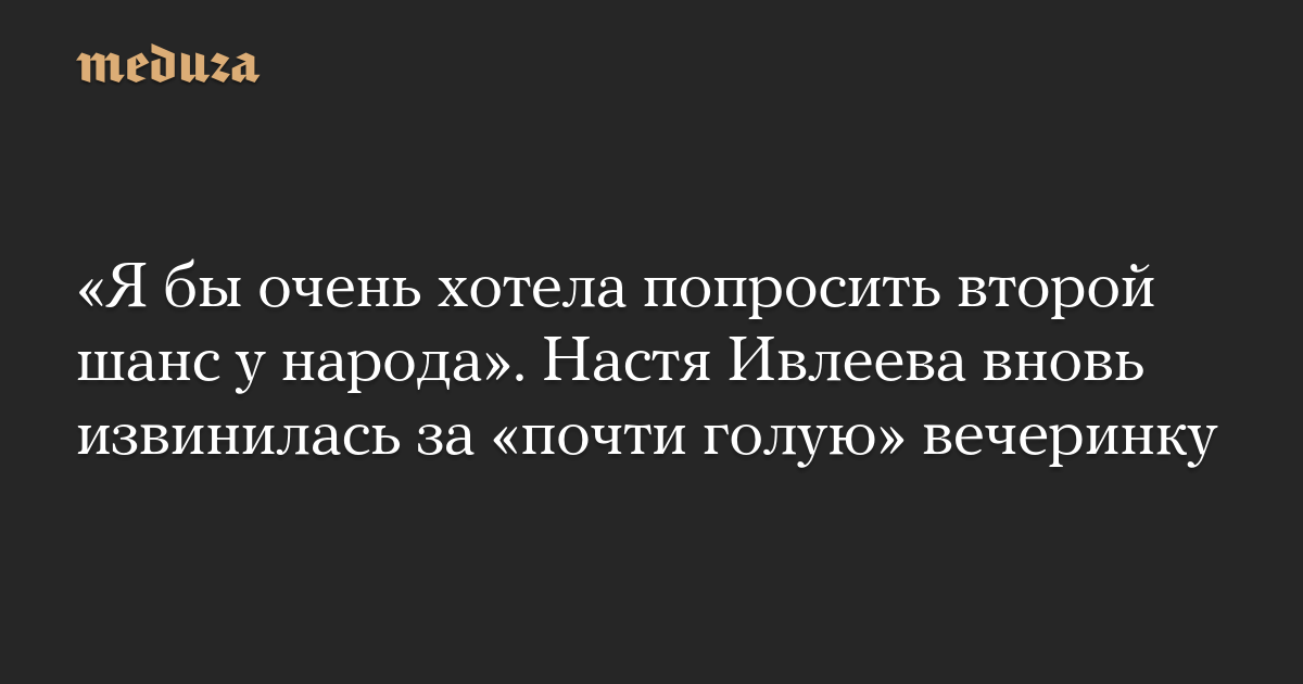 «Я бы очень хотела попросить второй шанс у народа». Настя Ивлеева вновь извинилась за «почти голую» вечеринку