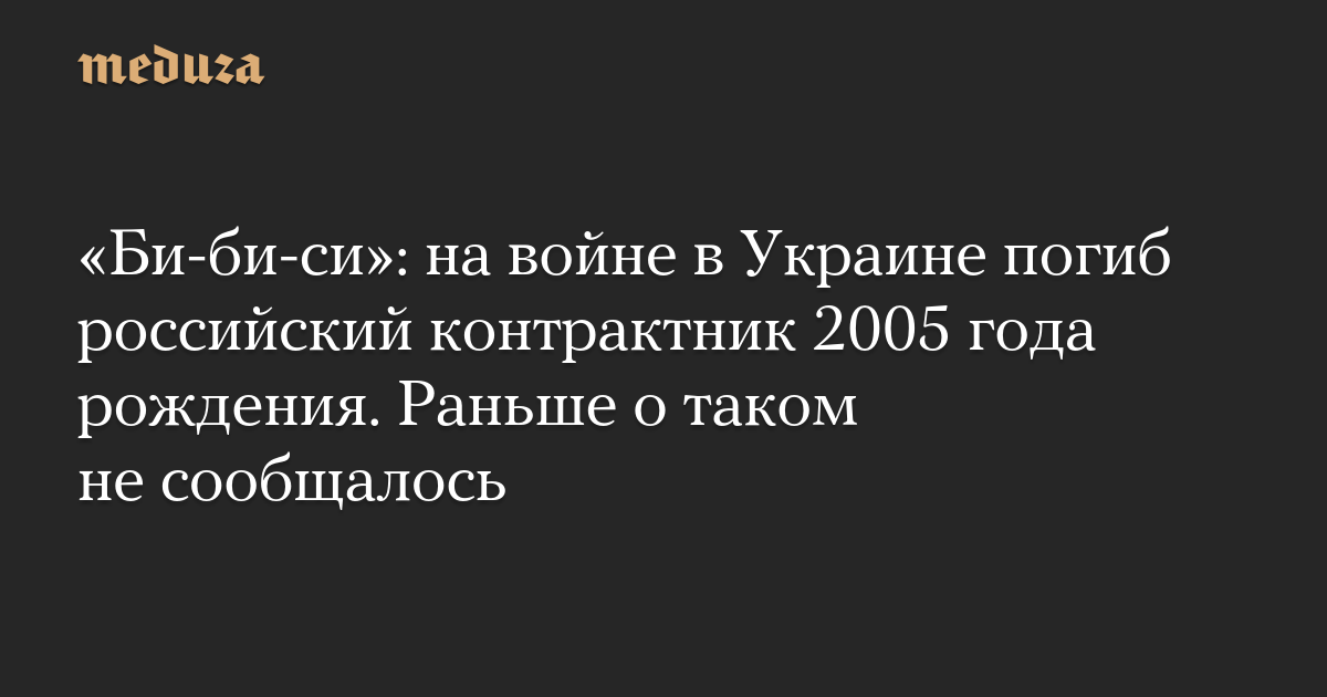 Это первый известный погибший военный 2005 года рождения, отмечает издание. В списках погибших российских военных, которые ведут журналисты «Би-би-си» и «Медиазоны» вместе с командой волонтеров, ранее не было солдат, родившихся в этом году.