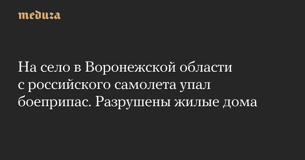 По меньшей мере семь частных жилых домов в селе Петропавловка в Воронежской области получили повреждения из-за того, что с российского самолета сошел авиационный боеприпас. Об этом сообщил губернатор Воронежской области Александр Гусев.