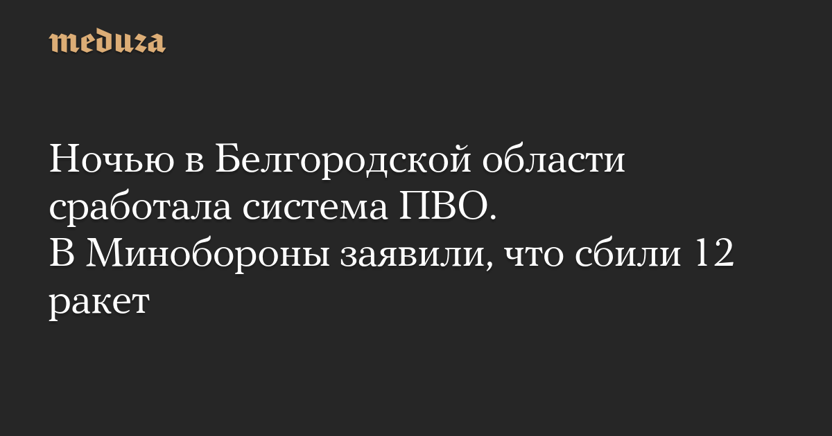 Ночью в Белгородской области сработала система ПВО. В Минобороны заявили, что сбили 12 ракет