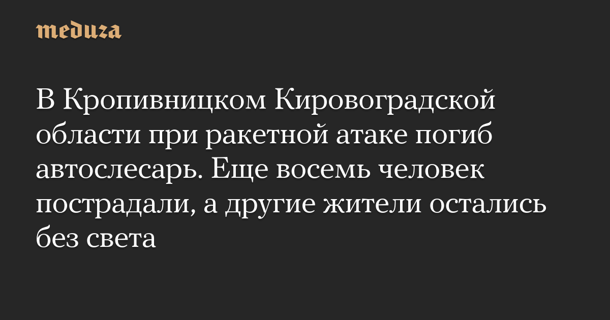 В Кропивницком Кировоградской области при ракетной атаке погиб автослесарь. Еще восемь человек пострадали, а другие жители остались без света