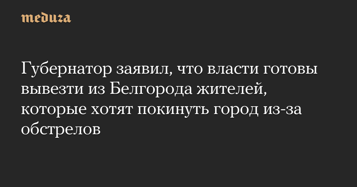 Губернатор заявил, что власти готовы вывезти из Белгорода жителей, которые хотят покинуть город из-за обстрелов
