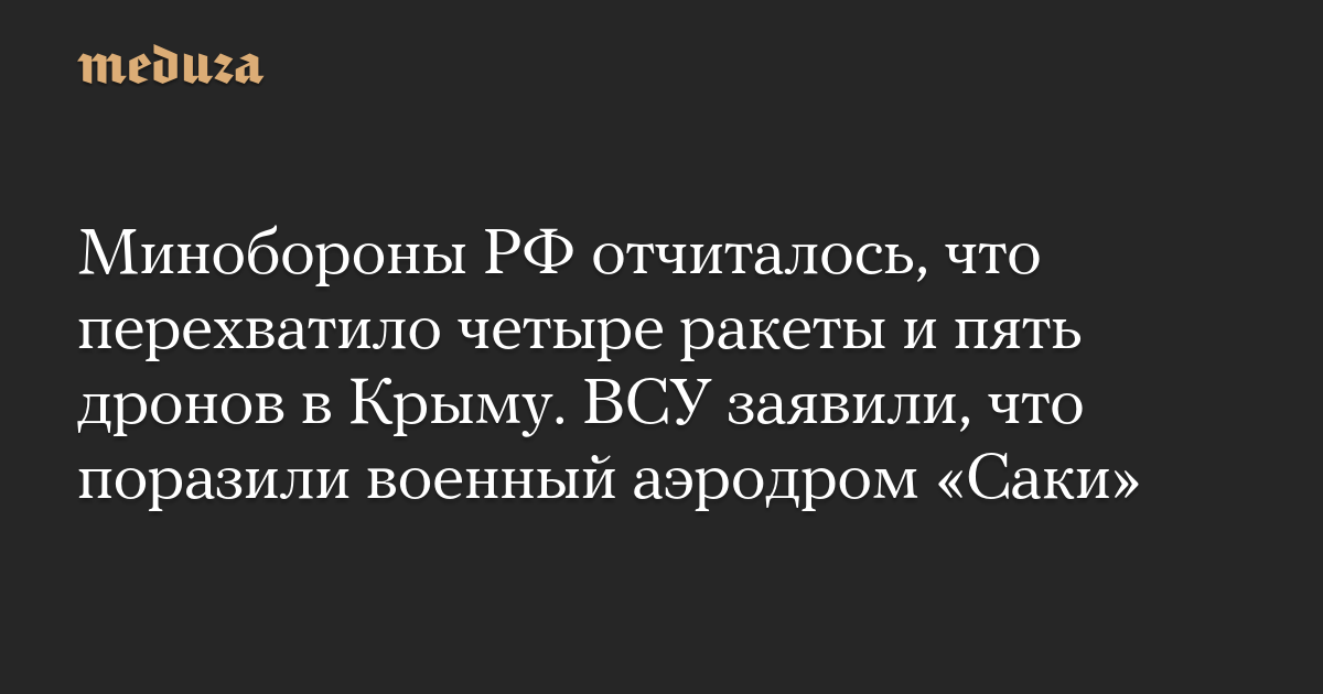 Минобороны РФ отчиталось, что перехватило четыре ракеты и пять дронов в Крыму. ВСУ заявили, что поразили военный аэродром «Саки»