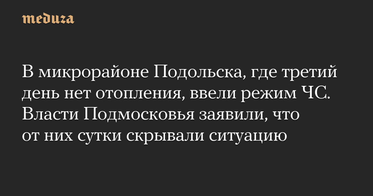 В микрорайоне Подольска, где третий день нет отопления, ввели режим ЧС. Власти Подмосковья заявили, что от них сутки скрывали ситуацию