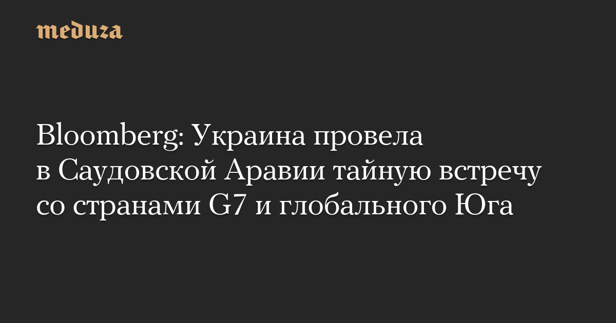 Bloomberg: Украина провела в Саудовской Аравии тайную встречу со странами G7 и глобального Юга