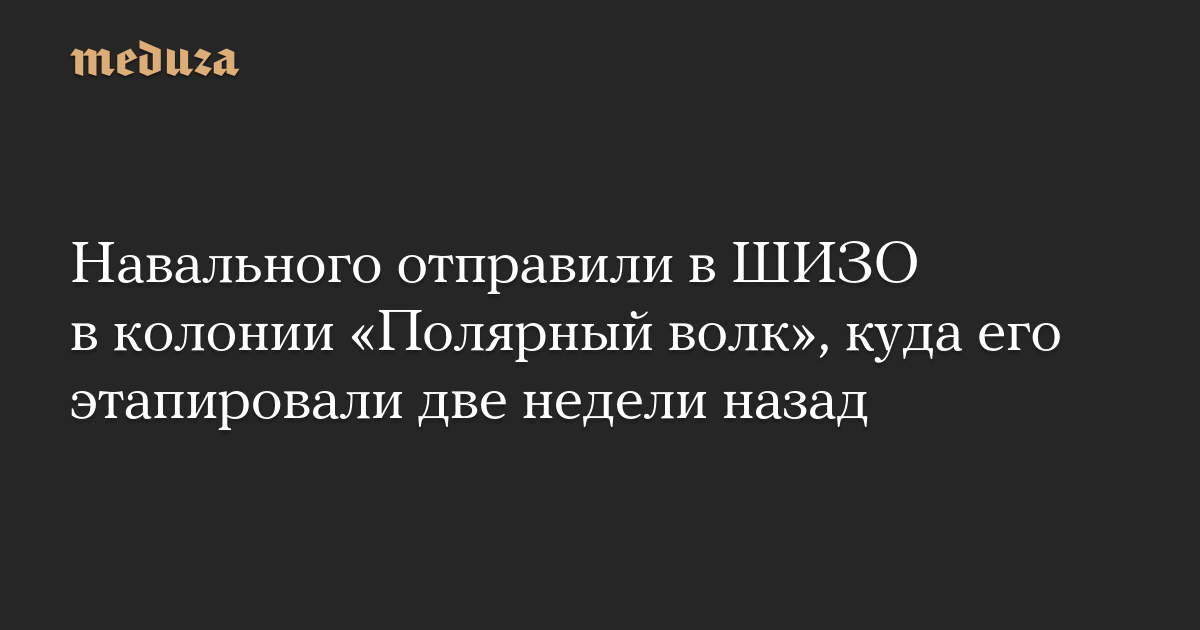 Навального отправили в ШИЗО в колонии «Полярный волк», куда его этапировали две недели назад