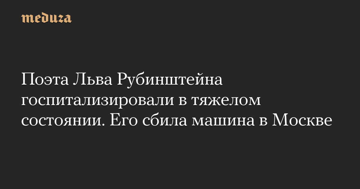 Поэта Льва Рубинштейна госпитализировали в тяжелом состоянии. Его сбила машина в Москве