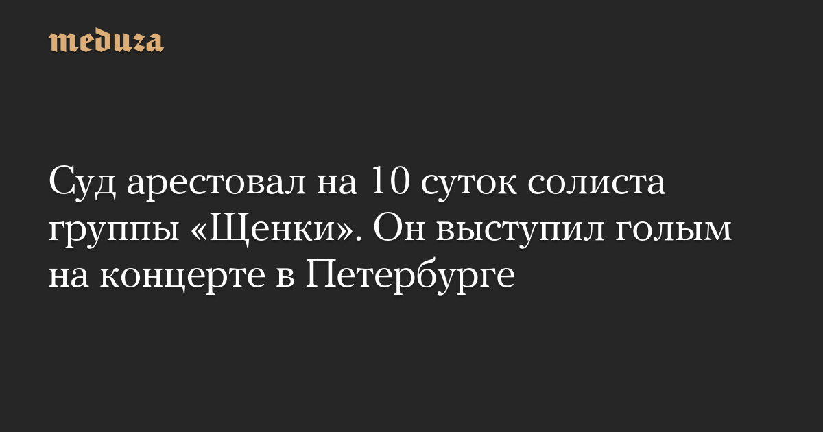 Суд арестовал на 10 суток солиста группы «Щенки». Он выступил голым на концерте в Петербурге