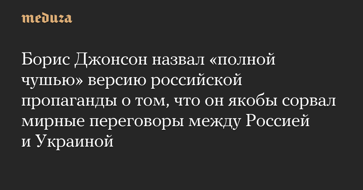 В частности, представитель МИД России Мария Захарова говорила, что Джонсон «запретил» Киеву подписывать мирные соглашения с Россией и заявила, что «инсценировка» в Буче (так российские власти говорят об убийстве мирных жителей российскими военными — прим. «Медуза») была организована Киевом «как предлог для того, чтобы сорвать переговорный процесс».
