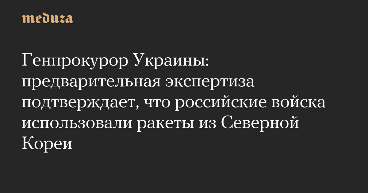 Генпрокурор Украины: предварительная экспертиза подтверждает, что российские войска использовали ракеты из Северной Кореи