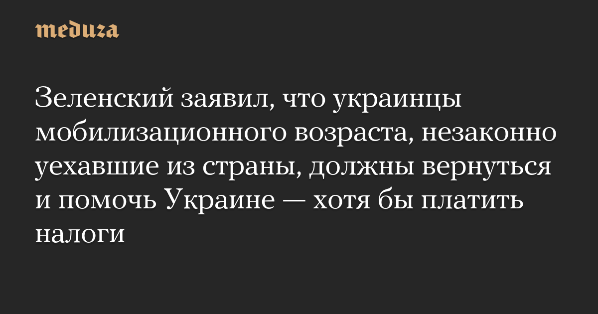 Зеленский заявил, что украинцы мобилизационного возраста, незаконно уехавшие из страны, должны вернуться и помочь Украине — хотя бы платить налоги
