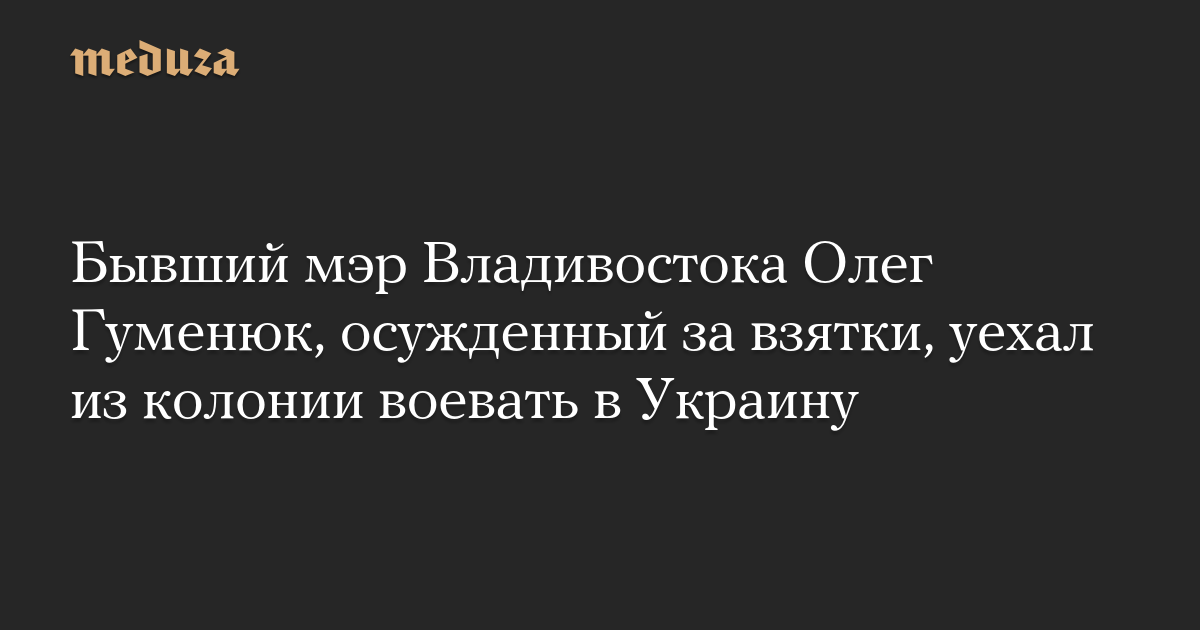 Бывший мэр Владивостока Олег Гуменюк, приговоренный к 12 годам лишения свободы по делу о взятках, заключил в колонии контракт с Минобороны РФ и отправился воевать в Украину. Об этом «Коммерсанту» рассказал адвокат Александр Китаев. Также это подтвердил источник РИА Новости, знакомый с ситуацией.