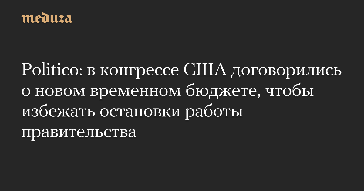 Politico: в конгрессе США договорились о новом временном бюджете, чтобы избежать остановки работы правительства