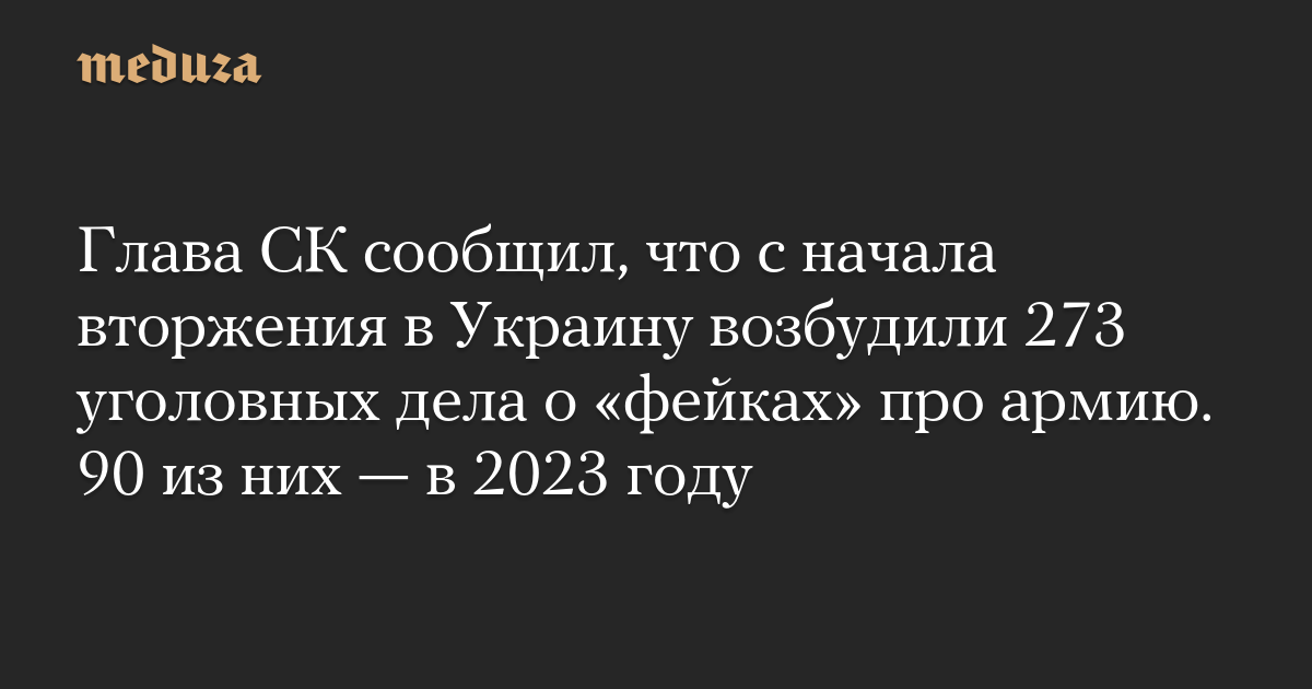 Глава СК сообщил, что с начала вторжения в Украину возбудили 273 уголовных дела о «фейках» про армию. 90 из них — в 2023 году