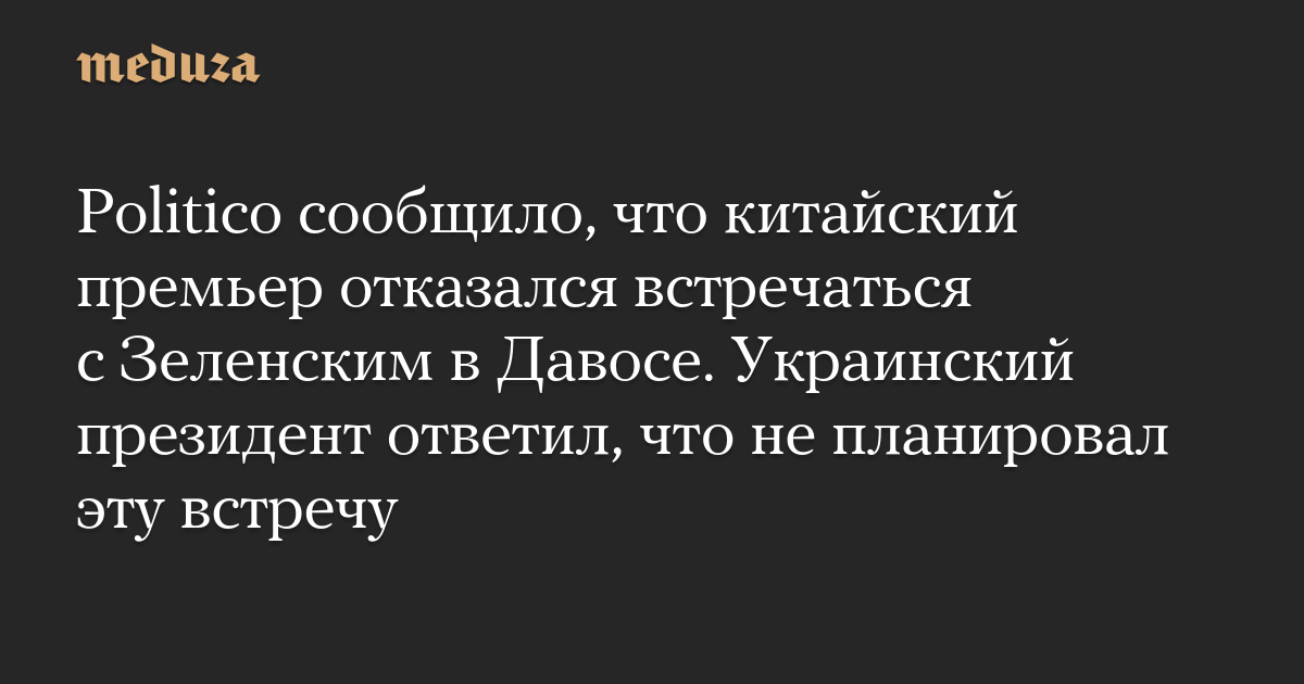 Politico сообщило, что китайский премьер отказался встречаться с Зеленским в Давосе. Украинский президент ответил, что не планировал эту встречу